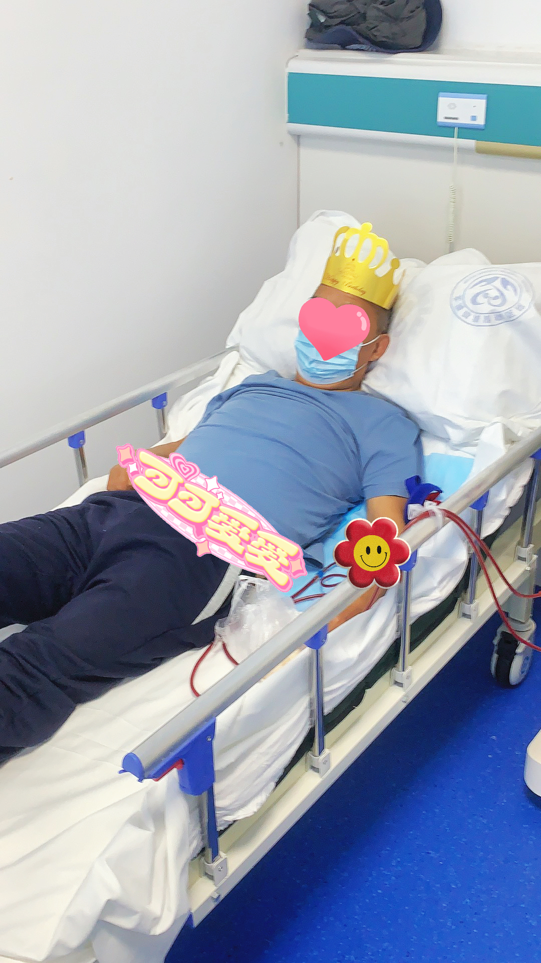 很快生日蛋糕送到了,我們的醫(yī)護(hù)人員給郎大哥戴上了壽星帽,大家一起給他唱響生日快樂歌,祝福他生日快樂,身體健康?,F(xiàn)場(chǎng)很溫馨,其他病床的腎友也紛紛給郎大哥送上生日的祝福,大家互相加油打氣。隨后郎大哥在大家的美好祝福聲中許愿,現(xiàn)場(chǎng)響起輕盈的掌聲。
